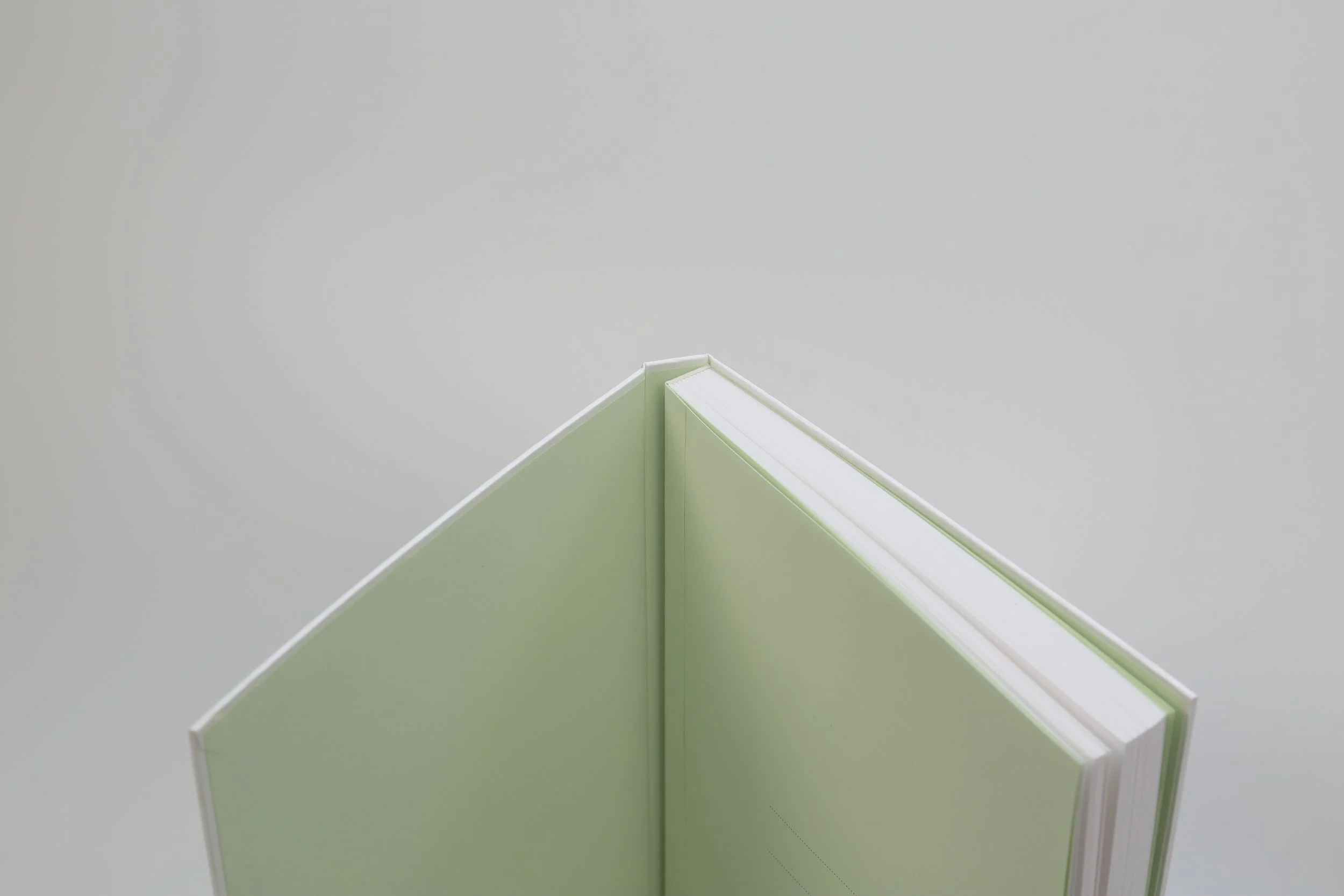 As with all his designs, form is expressed in the same breath as function. The cover is wrapped in a material you touch everyday, but never as a book. As you open to where you left off, the hardcover spine slides to allow facing pages to rest like one page.